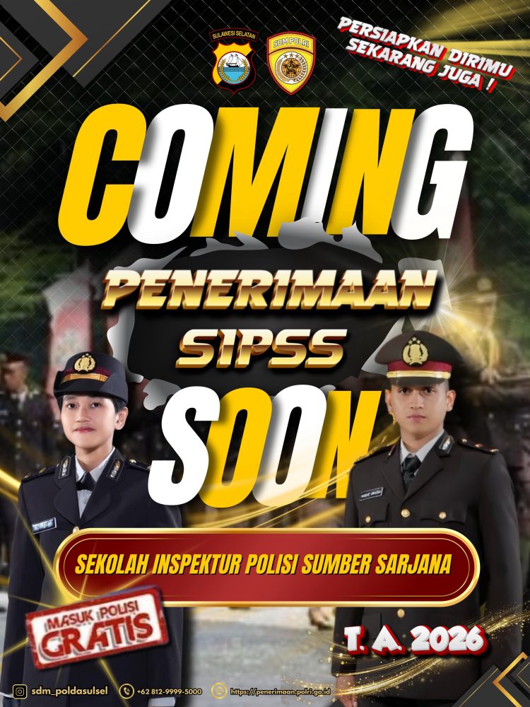Solidernusantara.com – Kepolisian Resor Sinjai melaksanakan kegiatan sosialisasi penerimaan Sekolah Inspektur Polisi Sumber Sarjana (SIPSS) Tahun Anggaran 2026. Kegiatan sosialisasi melalui berbagai media sosial resmi Polres Sinjai.